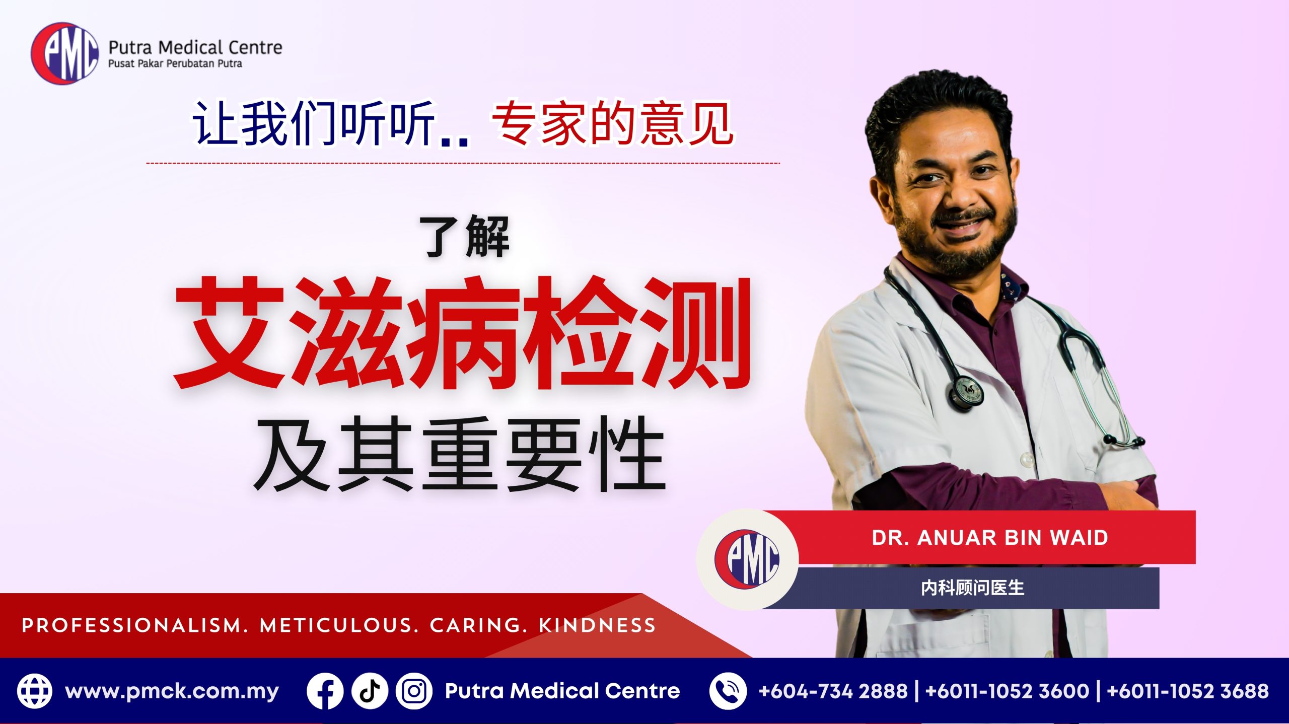 欢迎来到《专家解答》系列的最新一期。仁爱专科医院(PMC)在此为吉打州及马来西亚北部社区提供清晰可靠的健康资讯,以支持个人与家庭的健康需求。在本篇文章中,PMC的内科顾问医生 Dr. Anuar Bin Waid 将为大家讲解为何HIV检测是个人与公共健康中不可或缺的一环,以及马来西亚民众应了解的筛查、预防与早期治疗相关知识。