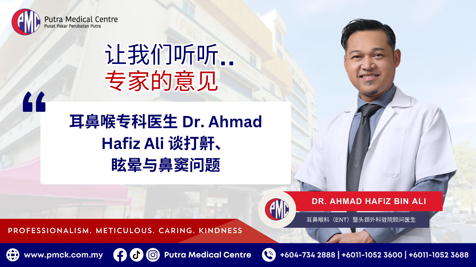 影响睡眠的打鼾、久治不愈的鼻窦疼痛,以及危及安全的头晕,并非小问题,而是身体发出的明确求救信号。请勿忽视,应立即采取行动。第一步,就是预约 PMC 的Dr. Ahmad Hafiz Ali进行专业评估。